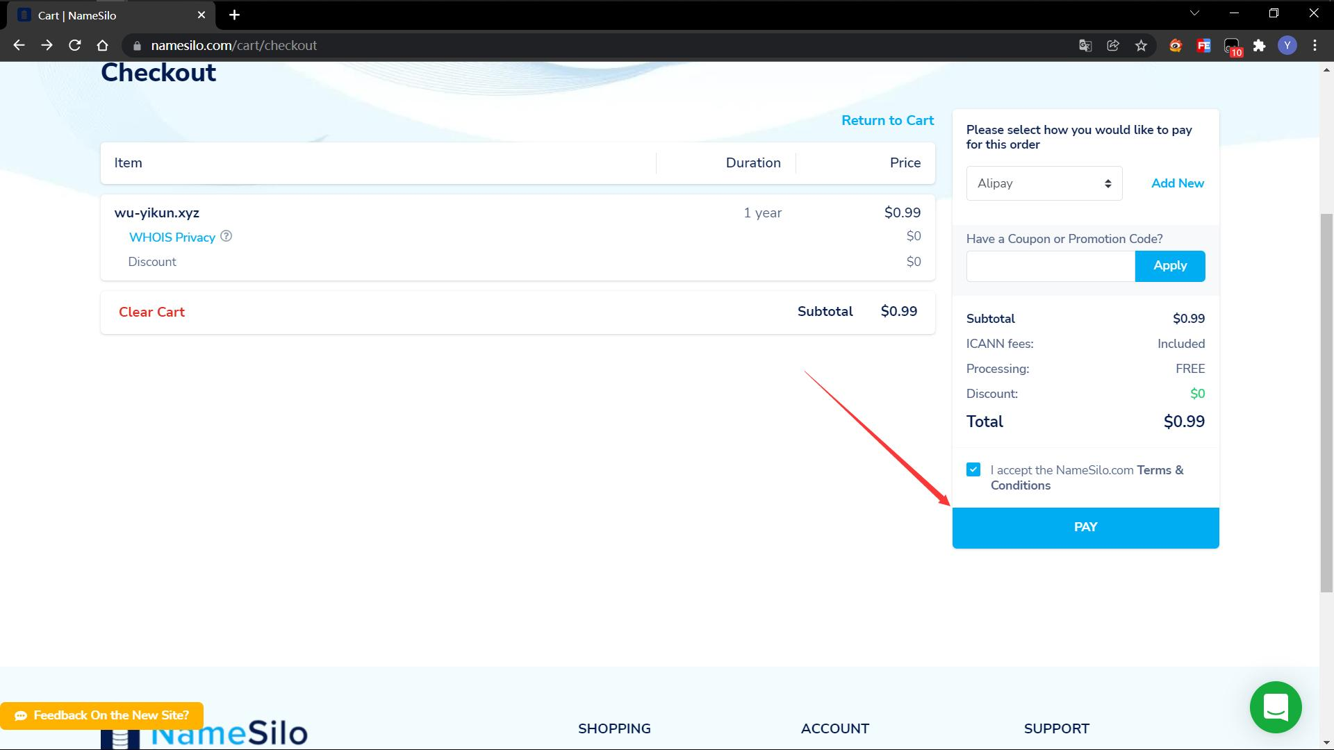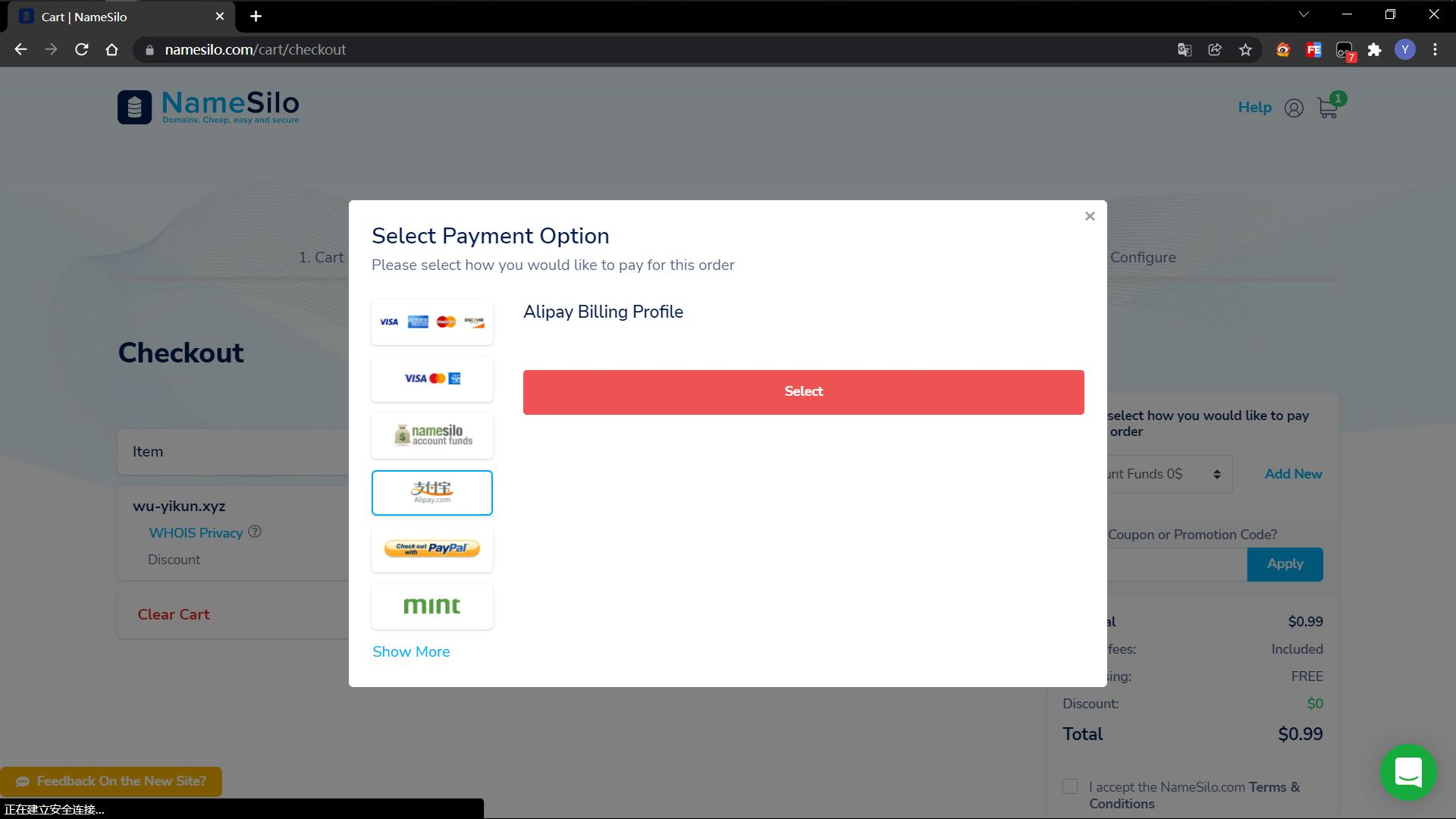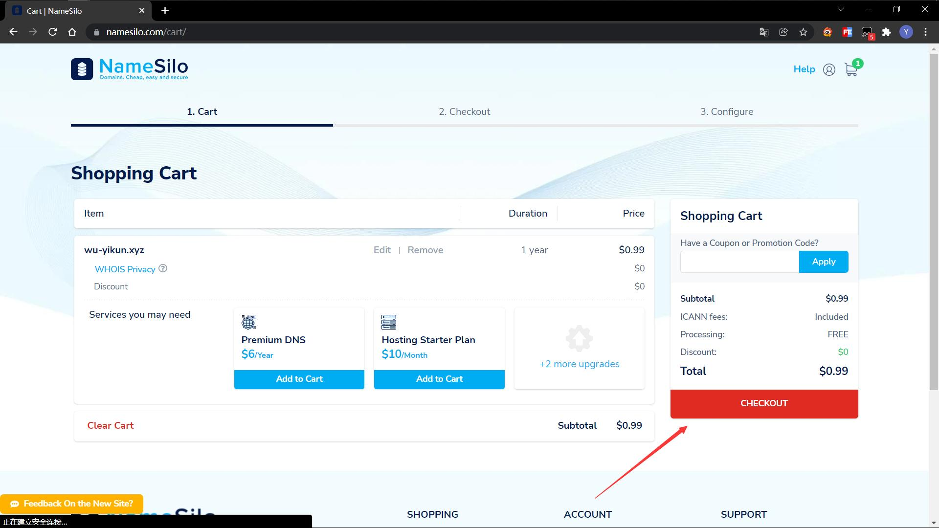 Add 后直接 Checkout,然后再 Checkout,别购买增值服务..