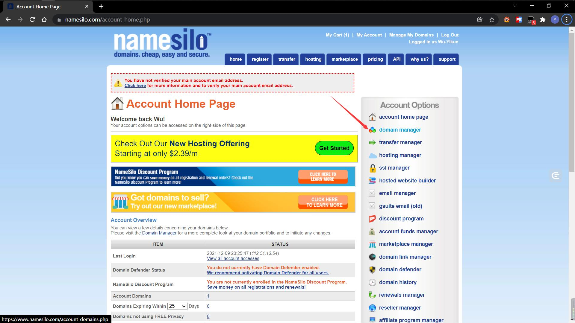 在搜索栏里检索你所要购买的域名,可能被人购买走了: