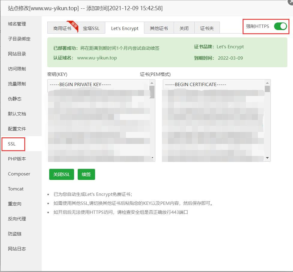🍻注意:添加 SSL 证书的前提就是域名解析生效!所以在此之前请耐心等待吧。
