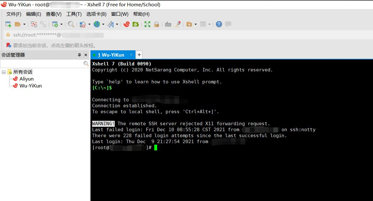 首先登录 Xshell 远程连接刚刚购买的 UCloud 云服务器: