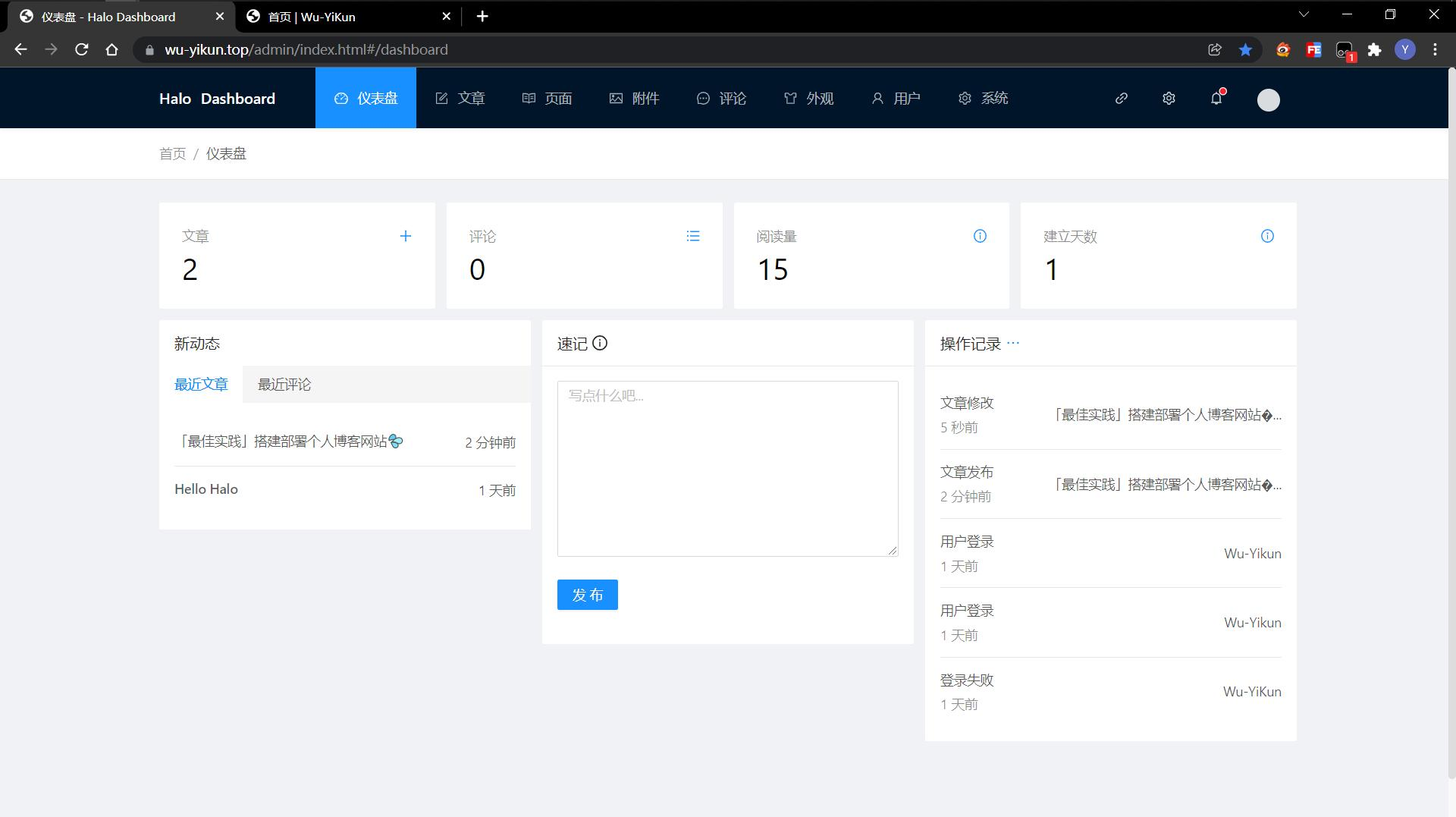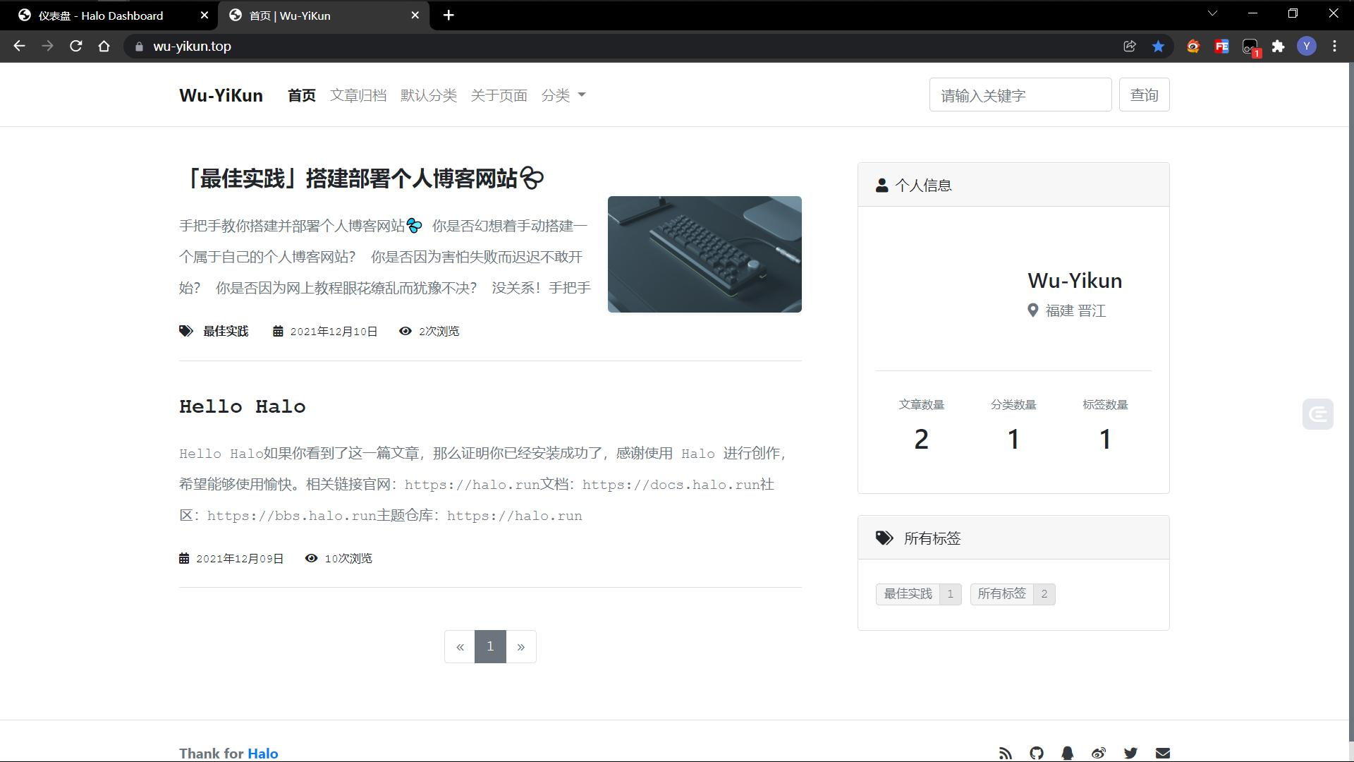 🏆如果对搭建个人博客仍存在细节上的问题可参考该视频:如何用服务器优雅地搭建一个博客—Hello,Halo!