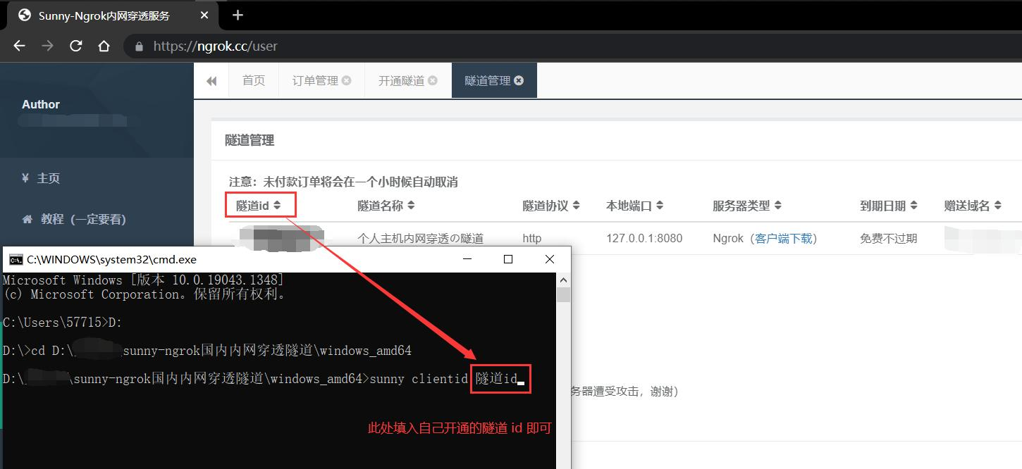 ⭐记住该隧道对应的 id,待会启动 sunny-ngrok 需要用到: