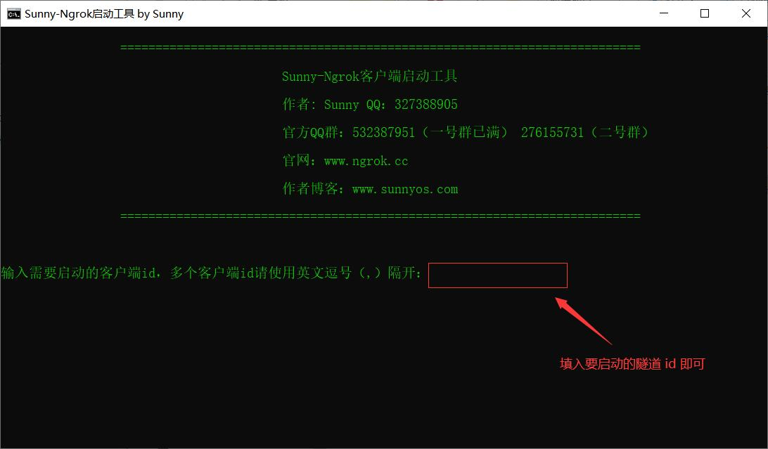 下载 sunny-ngrok 客户端,有如下两种方式启动 Sunny-Ngrok 客户端: