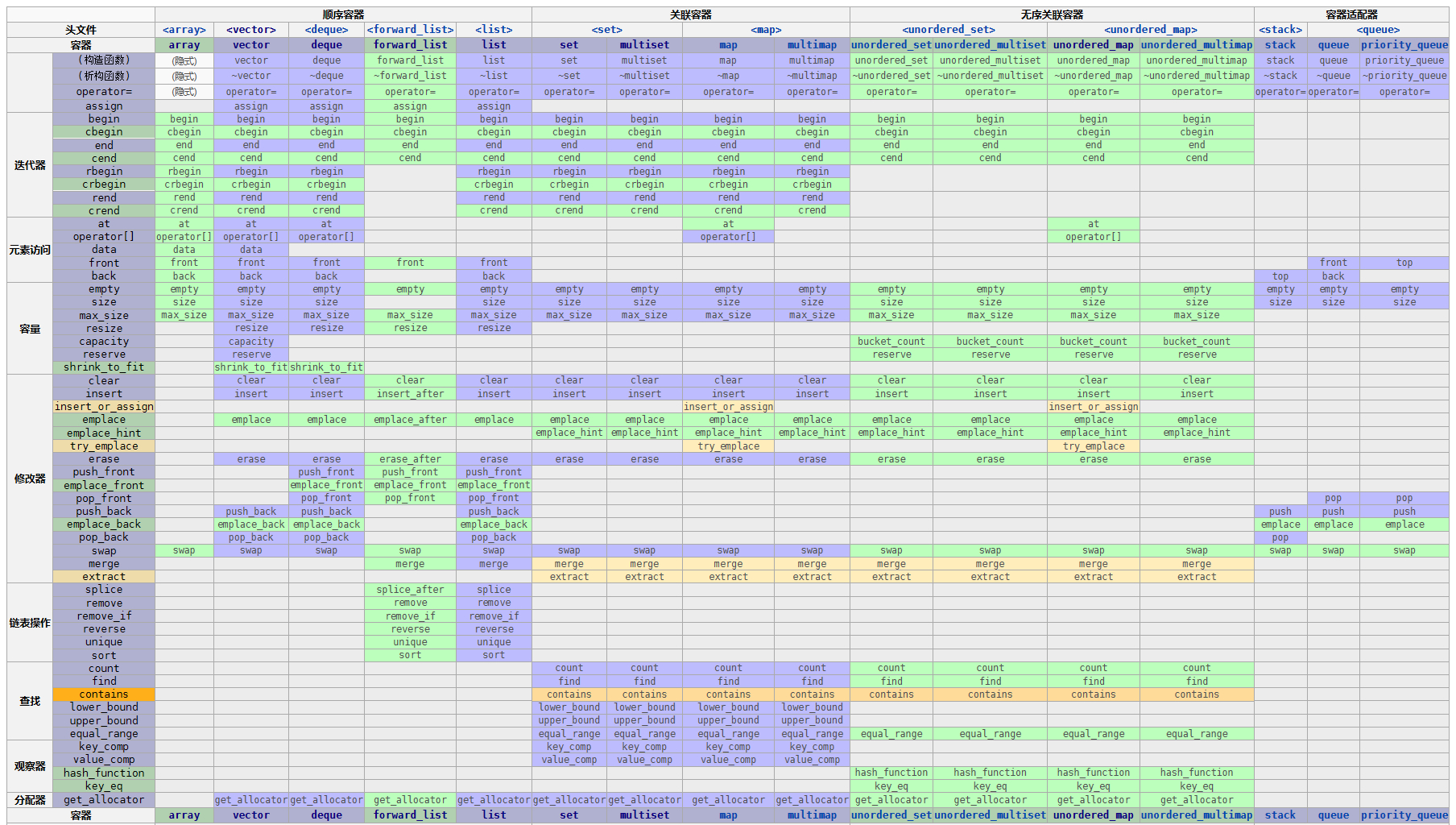 无序容器使用哈希表实现,元素无序排列,插入和查找操作平均时间复杂度为 O(1)。