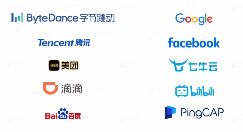 1.2 拥抱 Go 语言 目前字节跳动已全面拥抱 Go 语言。除此之外,哔哩哔哩、七牛云、腾讯、百度、美团、Facebook、Google、Twitter、滴滴、深信服、知乎、去哪儿、360、微博等公司也在大量使用 Go 语言。