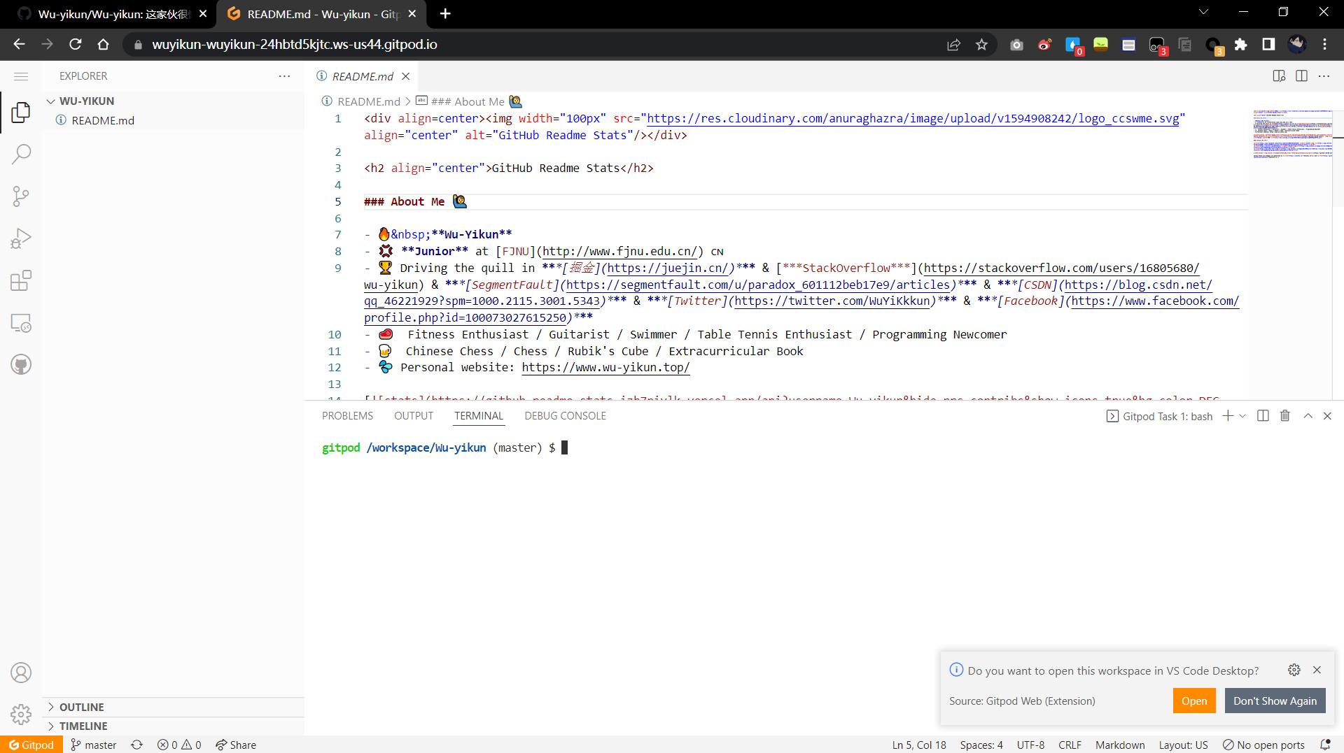 2.1.3 云上开发环境 我们还可以使用基于 GitHub 的 Gitpod  在线编程环境来使用 golang,只需在你的开源仓库 URL 的 https:// 替换成 https://gitpod.io/# 即可。