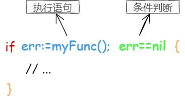 err 是 myFunc() 的返回值,执行后再对 err==nil 语句进行判断。