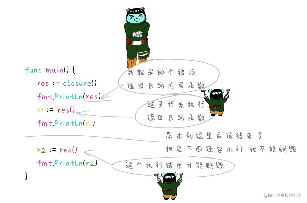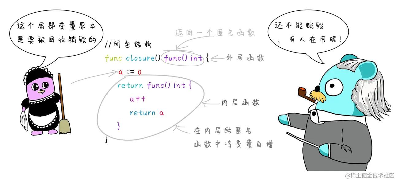 💖既然 Go 语言中的函数能作为返回值和参数,自然能打造闭包结构 ,与 JS 闭包含义相同。