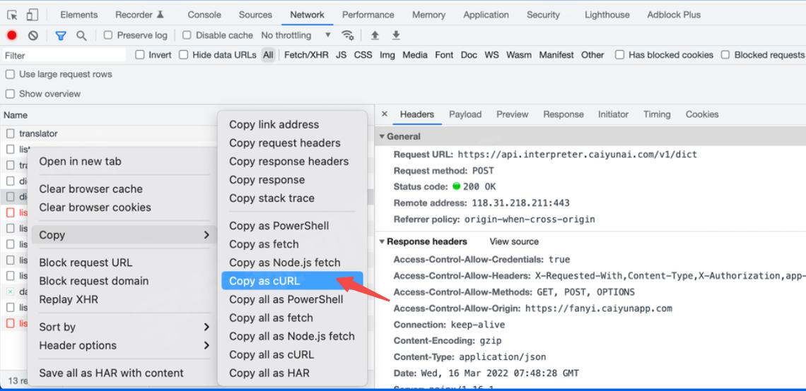 首先 Copy as cURL (bash),然后借助 curlconverter 工具生成 Golang 对应的请求代码: